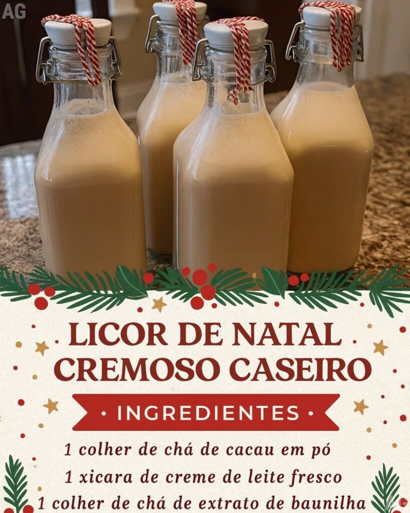 Aqui está uma receita de Licor Cremoso de Natal — perfeito para servir em festas, presentear ou simplesmente se deliciar nas celebrações natalinas! 🎄🥂✨