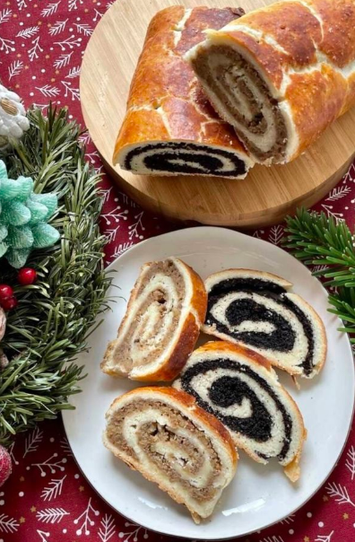 - Spread the walnut filling on one, and poppy seed filling on the other, leaving Β½ inch edges.