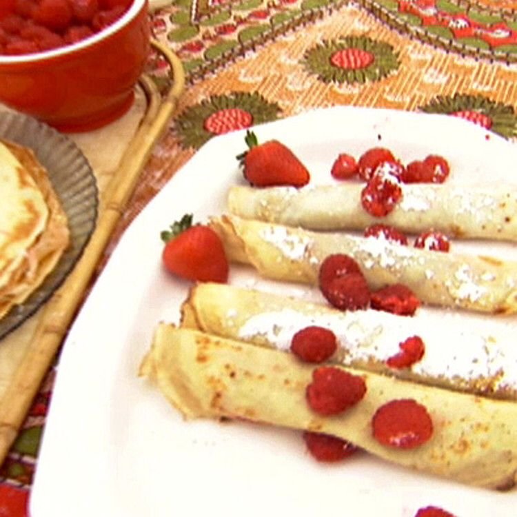 Spread your favorite filling over each crepe, roll or fold, and serve.