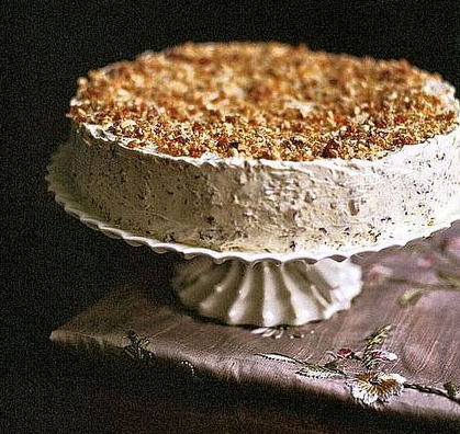 - Place one meringue layer on a serving plate. Spread a thin layer of buttercream.