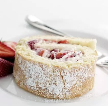 - Unroll the cooled cake, spread the cream and strawberry filling evenly, then re-roll (without the towel).