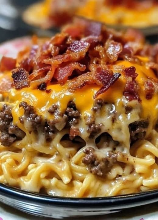 🍔🥓 Bacon Cheeseburger Ramen Noodle Bake – Comfort Food Heaven! 🥓🍔