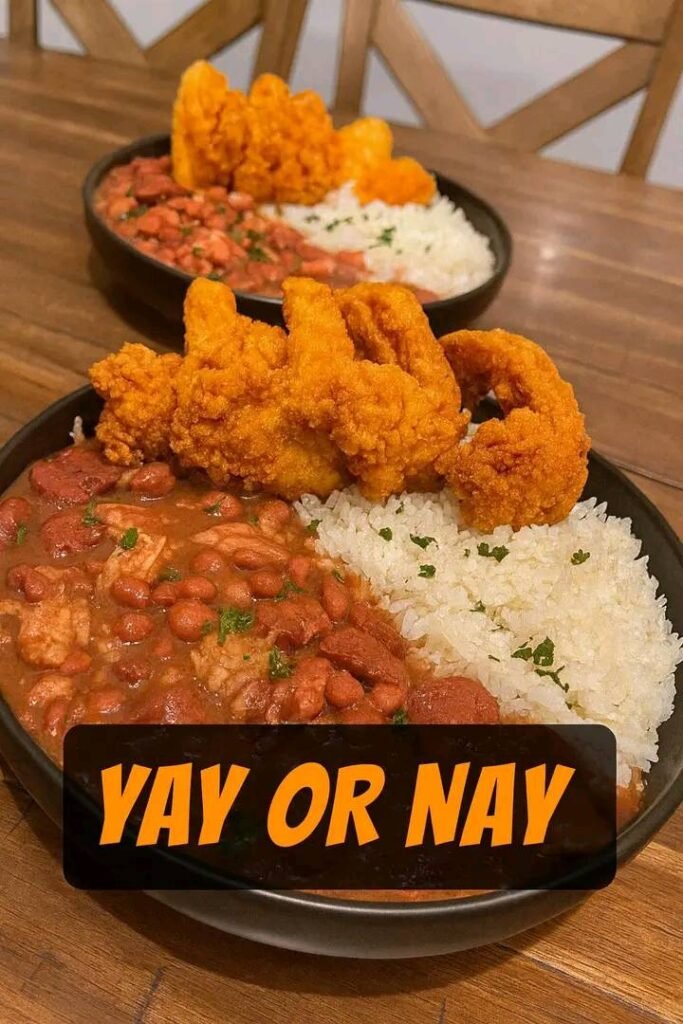 This classic Southern meal brings together crispy golden shrimp with hearty, smoky red beans and fluffy rice — a flavor-packed comfort dish that feels like home with every bite.
