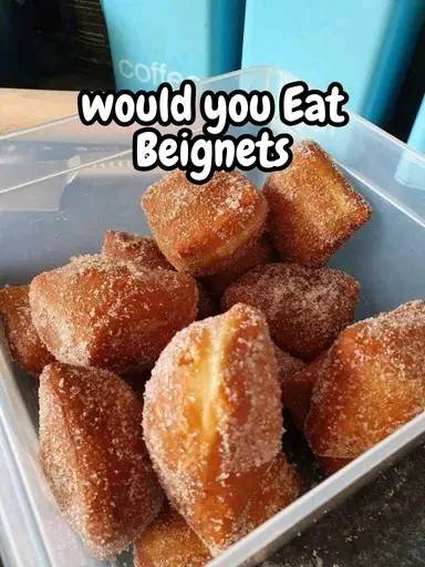 - Heat oil in a deep skillet to 350°F (175°C). Fry beignets in batches until puffed and golden, about 2 minutes per side.