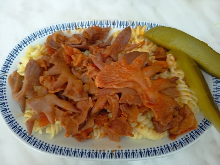 Serve hot with fresh bread, or traditional Hungarian nokedli (dumplings). Pickles (like sauerkraut, cucumber pickles, or mixed salad) go perfectly on the side.