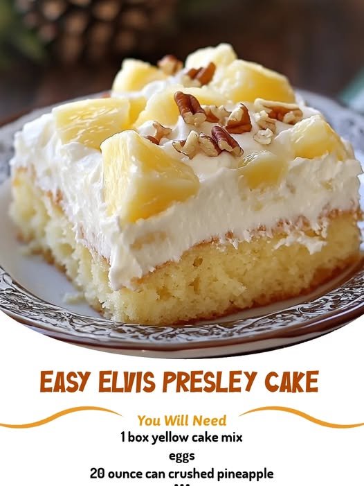 A Southern classic — sweet, tangy pineapple topping with a creamy frosting over soft yellow cake.
