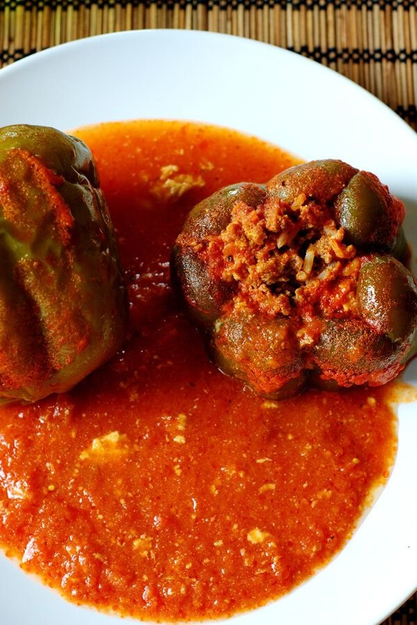 - Mix meat, rice, onion, garlic, egg, paprika, salt, and pepper.