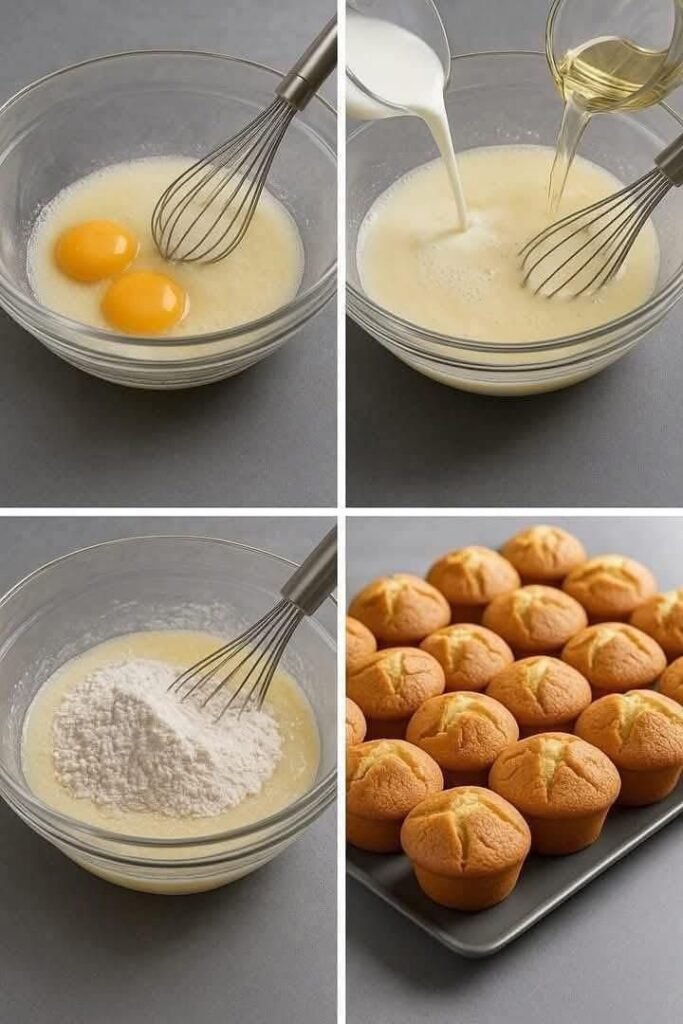- Add liquids: mix in milk, oil, and vanilla until smooth.