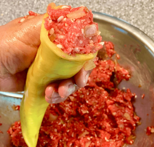 - Stuff each pepper loosely (rice will expand while cooking). Shape any leftover filling into small meatballs (called gombóc).