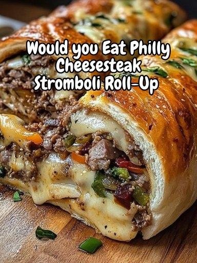 Ohhh yes 😍 — a Philly Cheesesteak Stromboli Roll-Up is the ultimate comfort food twist! Think of it as tender steak, peppers, onions, and gooey provolone wrapped up in pizza dough, baked golden brown, and sliced into cheesy rolls. Perfect for game night, parties, or a hearty dinner.