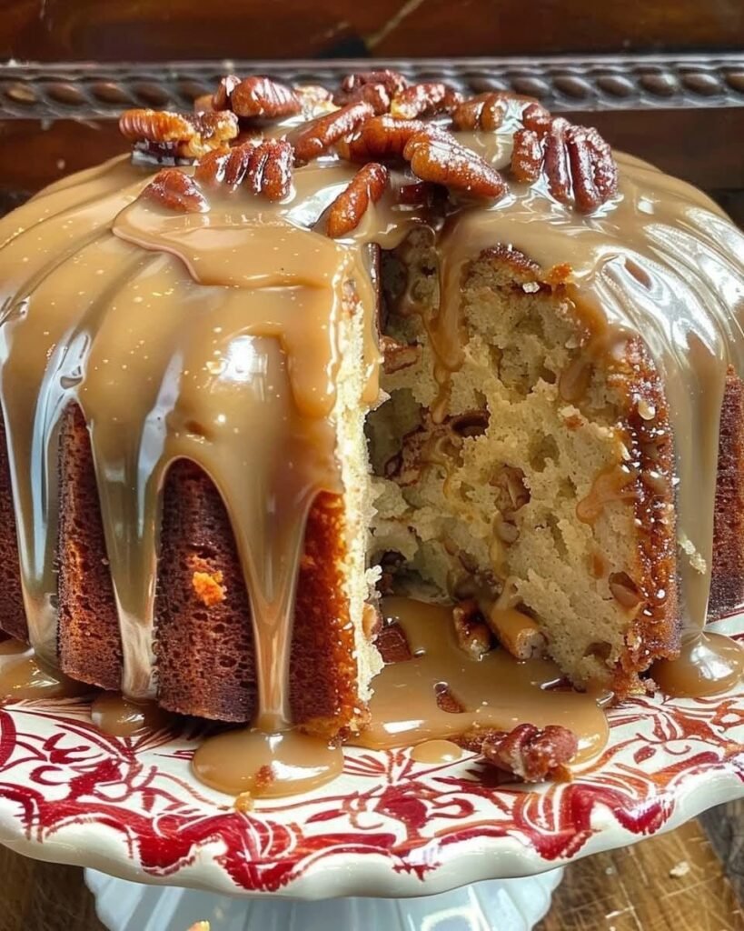 The result is a rich, moist pound cake with deep brown sugar flavor and crunchy caramel pecans—a perfect dessert for any occasion! 😍