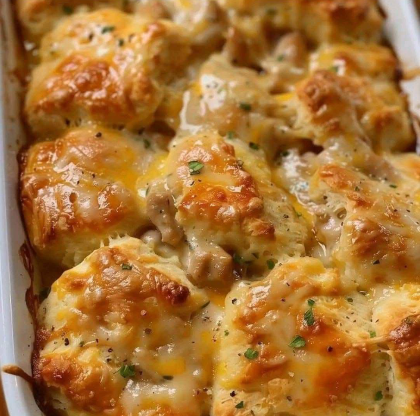 Enjoy your delicious cheesy chicken biscuit casserole! 😊