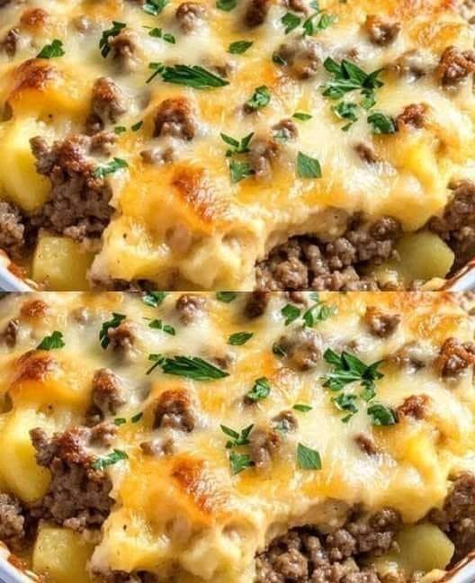 This Cheesy Hamburger Potato Casserole is rich, creamy, and full of flavor—perfect for satisfying those comfort food cravings! 🧀🥔🍔
