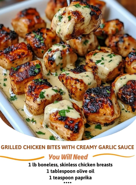 Here’s a flavorful and easy recipe for Grilled Chicken Bites with Creamy Garlic Sauce 🍗🧄🥣