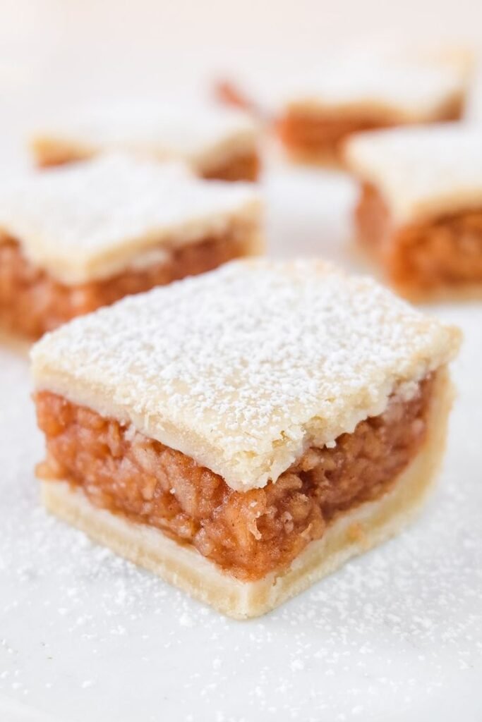 - Let the pie cool completely before dusting generously with powdered sugar. Slice into squares for serving.