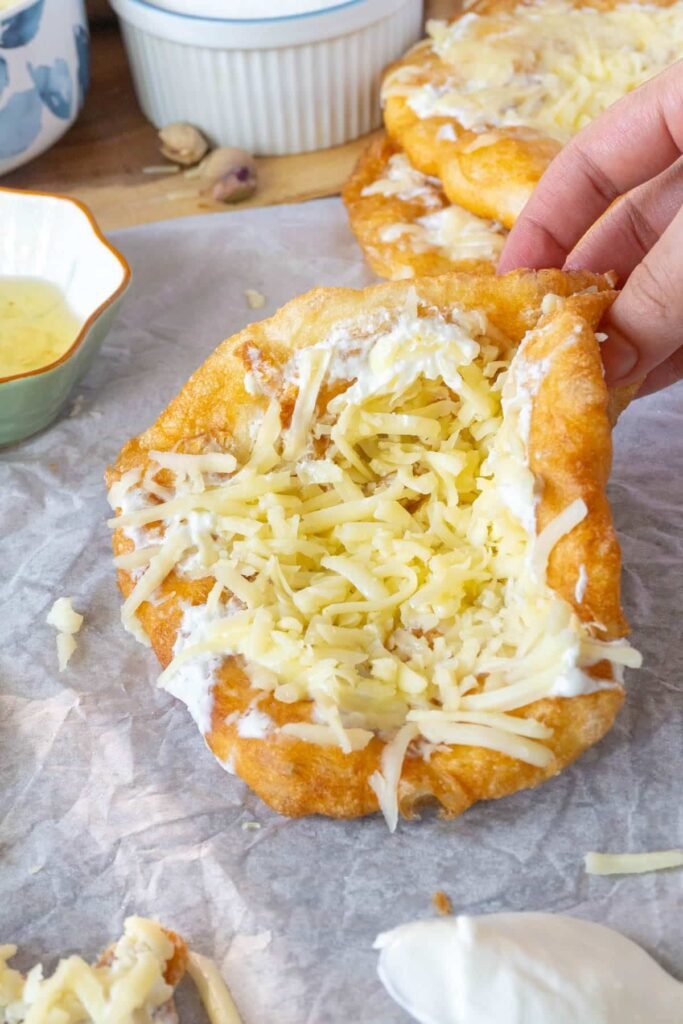 - For fluffier lángos, let the dough rise longer — even 1.5–2 hours.