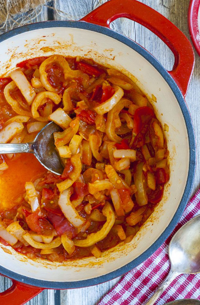 - Season & cook: Add salt and pepper. Cover and let simmer for 20–30 minutes until the peppers are tender and the stew is flavorful.
