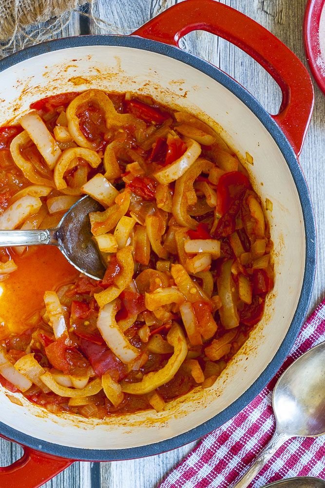 Hungarian Lecsó – Pepper-Tomato Stew Ingredients: 2 tbsp vegetable oil or lard 1 large onion, sliced 2–3 Hungarian wax peppers (or bell peppers), sliced 3–4 ripe tomatoes, chopped (or 1 can) 1 tsp paprika Salt and pepper to taste Optional: sausage (kolbász), eggs, or rice INTRODUCTION Related Posts:Sausage Leczo / Lecso (Hungarian Vegetable Stew Recipe)🇭🇺Lecsó RecipeHungarian Lecsó - Pepper and Tomato stewAuthentic Lecsó (Hungarian Pepper Stew)🇭🇺Hungarian Lecsó - Stewed peppers and tomatoes🇭🇺..Hungarian Goulash: A Hearty ClassicHungarian Lecsó - Pepper and Tomato stew🇭🇺Lecsó (Hungarian simmered peppers and tomatoes)🇭🇺Hungarian Tojásos Lecsó🇭🇺.Zucchini and Tomato Frittata Pages: 1 2