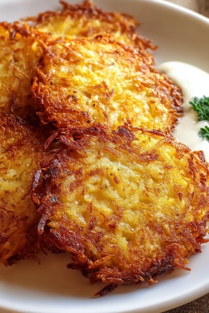 Crispy on the outside, soft on the inside potato pancakes seasoned with garlic and spices, pan-fried until golden.