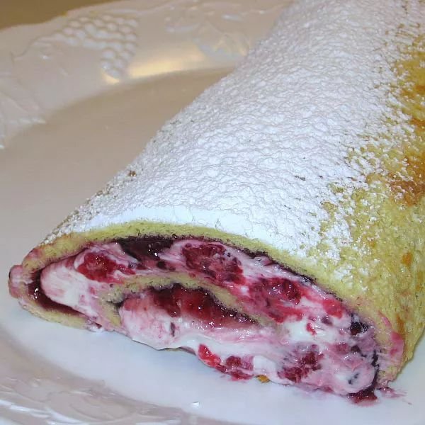 - Unroll the cooled cake carefully. Spread raspberry jam evenly, then top with whipped cream.