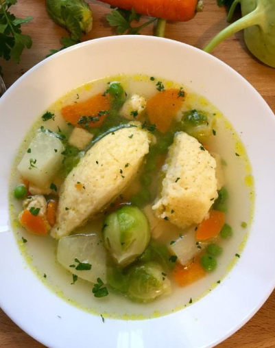 - Ladle the soup into bowls with 2–3 dumplings each.