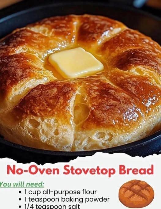 Here’s a simple, no-oven stovetop bread recipe that’s soft, fluffy, and easy to make 🍞✨: