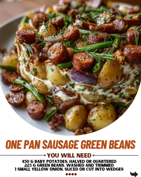Here’s a super easy and flavorful recipe for One Pan Sausage and Green Beans – a quick dinner that’s hearty, colorful, and perfect for busy nights:
