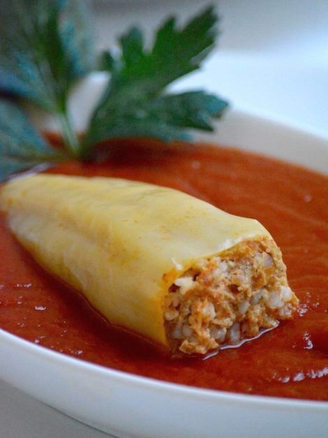 Hungarian Stuffed Peppers in Tomato Sauce (Töltött Paprika)