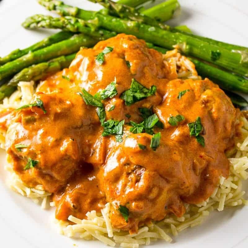 Chicken Paprikash with Meatballs