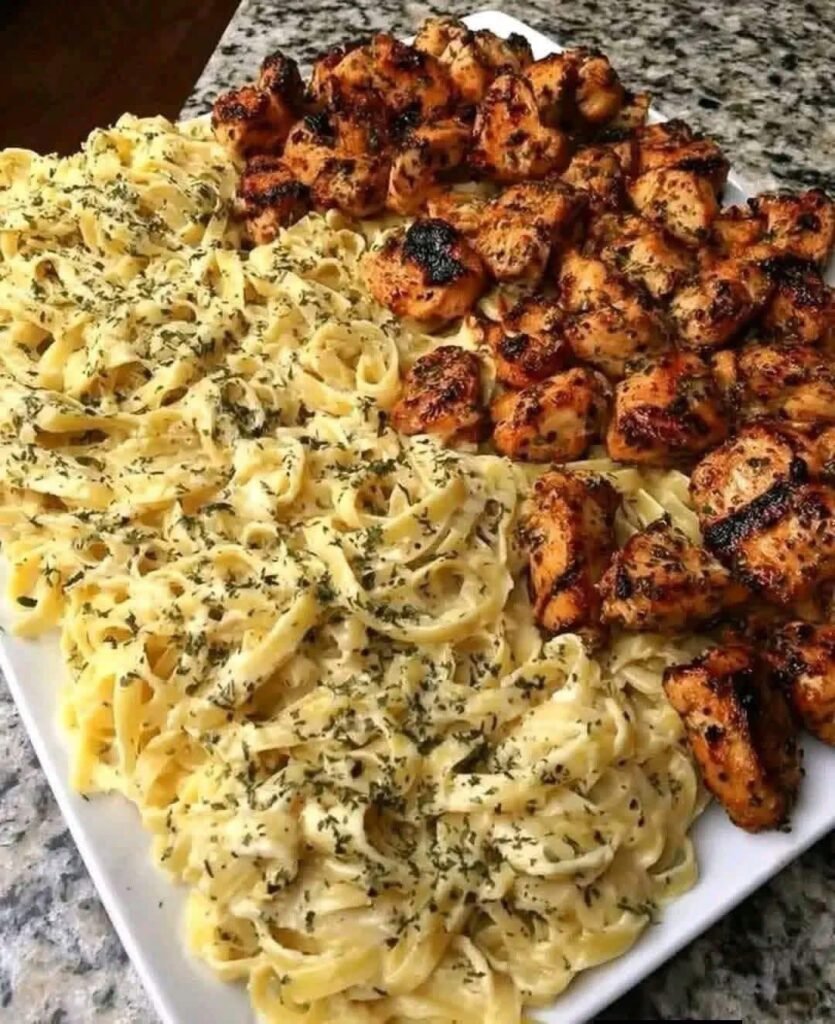 Garlic Butter Chicken & Linguine in Alfredo Sauce