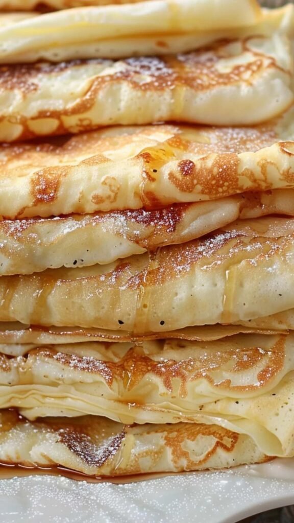 Thin, delicate crepes — softer than French crêpes and perfect with sweet or savory fillings.