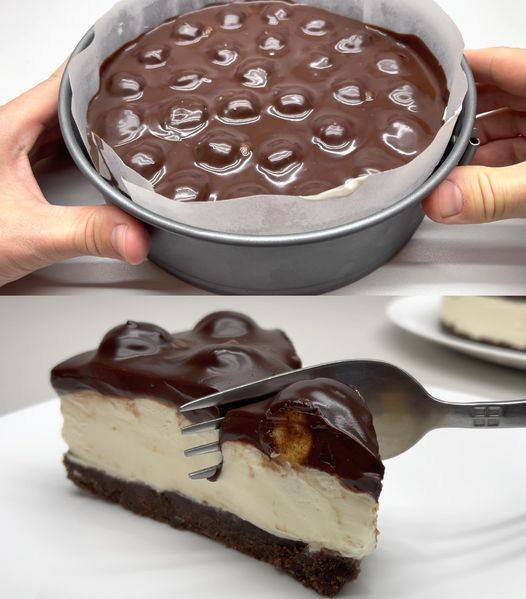 - Cubre el molde con film plástico y refrigera el pastel durante al menos 3-4 horas, o hasta que el relleno esté firme. Para mejores resultados, deja reposar toda la noche.