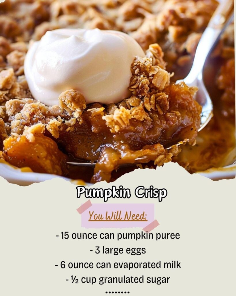 If you want, I can also give you a slow-cooker pumpkin crisp version that’s super easy and requires almost no prep — perfect for a cozy hands-off dessert.