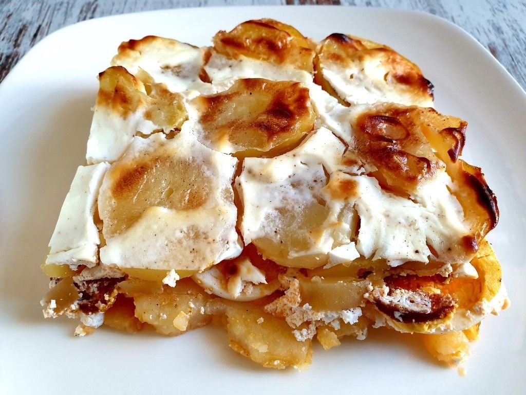 - Repeat layers until ingredients are used, finishing with potatoes on top.