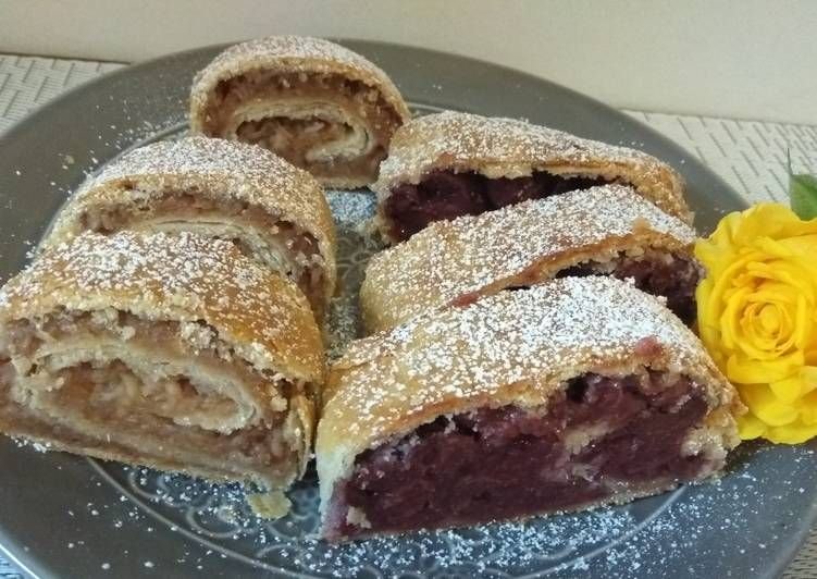 - Let cool slightly, slice, and dust with powdered sugar.