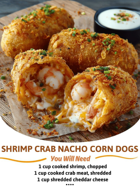 ✨ These are crunchy, cheesy, seafood-stuffed corn dogs with a nacho twist — perfect for parties, game day, or when you want to surprise your guests with something outrageous but delicious.