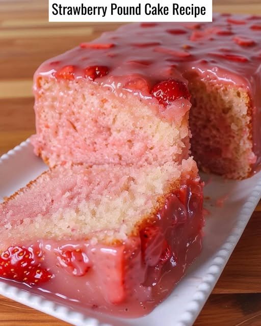 Blend a few strawberries into a smooth puree. Whisk the powdered sugar, strawberry puree, heavy cream and vanilla until smooth. Drizzle over cooled cake.