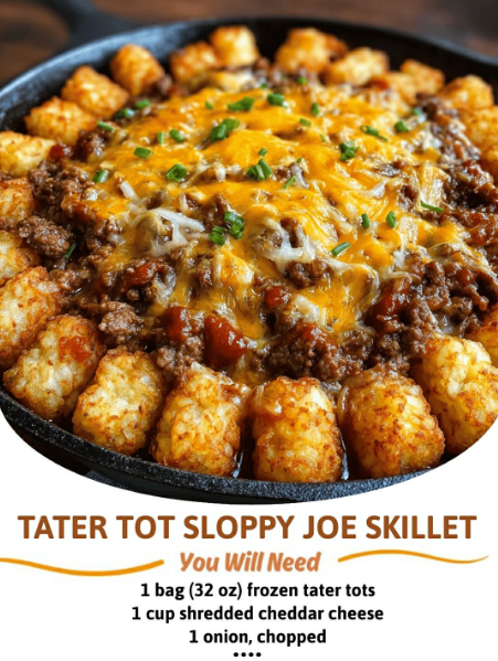 Here’s a Tater Tot Sloppy Joe Skillet recipe – it’s a fun twist on two comfort food favorites: sloppy joes + tater tots, all in one cheesy skillet dish. 🥔🍅🧀