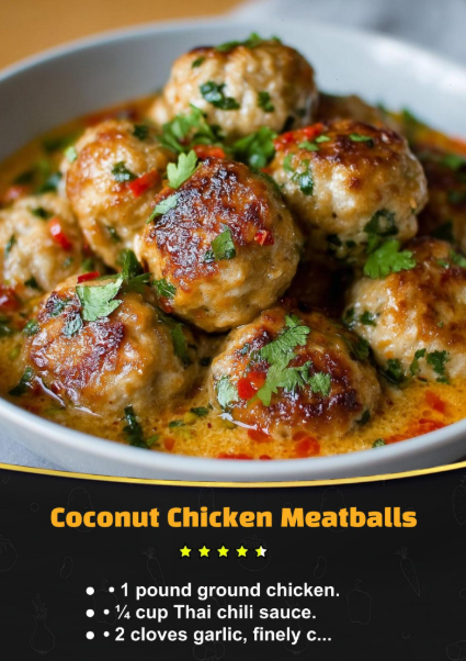 Here’s a cozy, flavorful recipe for Thai-Inspired Coconut Chicken Meatballs — a dish that balances creamy coconut milk with zesty lime, fresh herbs, and a gentle kick of spice:
