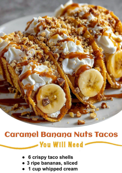 That sounds like a fun twist on dessert tacos! Here’s how you could make Caramel Banana Nuts Tacos:
