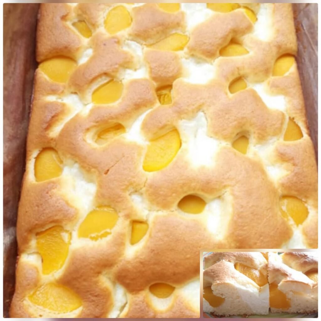 This looks like Hungarian Peach Yogurt Cake (Barackos Joghurtos Süti). Recipe Ingredients 3 eggs 150 g sugar 1 tsp vanilla sugar 200 g yogurt 100 ml oil 200 g all-purpose flour 1 tsp baking powder 1 can peaches (or fresh peach slices) powdered sugar (optional) INTRODUCTION Related Posts:The Timeless Charm of Hungarian Walnut Cake (Diós…🍑 Old Time Oven Peach CobblerHawaiian Wedding Cake with Whipped Cream Cheese…Coconut Cream Dream Cake: A Slice of ParadiseThe Ultimate Strawberry Cheesecake Dump Cake: A…Krispy Kreme Peach Cobbler!! 🍑Irresistible Summer Peach Cake 🍰: A Sweet, Fruity…Sour Cherry Cake – Hungarian Style: A Slice of TraditionIrresistible Summer Peach Cake 😋🍑🍰🍏 The Ultimate Apple Cake with Raisins Recipe: A… Pages: 1 2